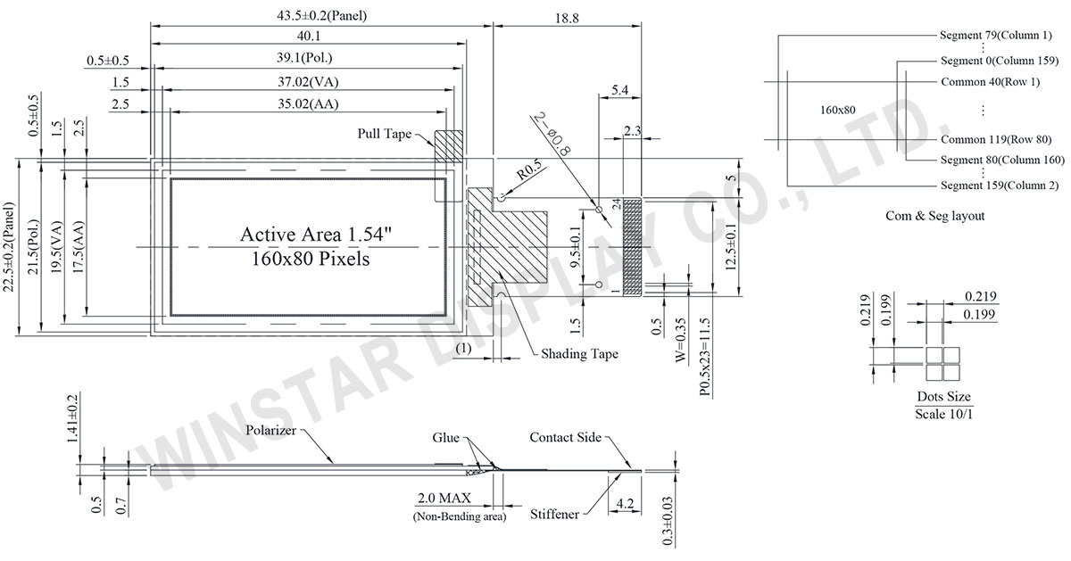 Eleva tus soluciones de visualización con la pantalla WEO016080A – Graphic OLED de Winstar. Con una pantalla compacta de 1,54 pulgadas y una nítida resolución de 160×80, esta pantalla ofrece visuales nítidos y claros con un alto contraste en un elegante color de contenido blanco. Su versátil interfaz admite 6800, 8080, I²C y SPI, lo que garantiza una integración perfecta con diversas aplicaciones. Alimentado por el controlador SSD1320, funciona eficientemente a un voltaje de 3 V, lo que lo hace ideal para proyectos conscientes de la energía. El tipo de módulo COG (Chip on Glass) garantiza un perfil delgado con unas dimensiones de 43,5×22,5×1,41 mm, perfecto para diseños con limitaciones de espacio. Con un impresionante rango de temperatura de funcionamiento de -40 a 80 °C, esta pantalla es fiable en diversas condiciones ambientales. Ideal para desarrolladores e ingenieros, el WEO016080A destaca en la categoría de gráficos OLED, ofreciendo un rendimiento y una durabilidad excepcionales. Elige calidad e innovación con la tecnología líder de Winstar.